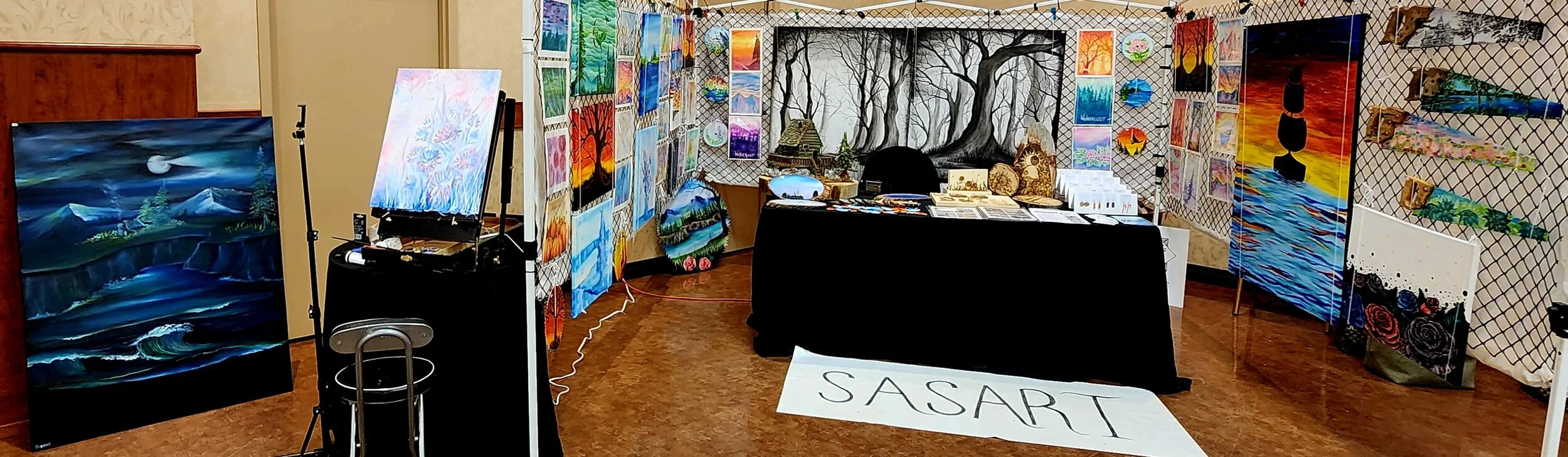 A look at some of the photos from the Lacombe Encore Art Sale that was held Friday and Saturday at the Lacombe Memorial Centre in the Centennial Hall. This was a great event held by the City of Lacombe and Vista Energy and will be an event SASART plans to attend again! It was wonderful to meet new artists, chat with the public, and showcase my works. I did two live paintings, and 4 small wood burns live while at the event. In total selling twelve original creations as well! To all the artisans and members of the community who took time to come and chat, visit, appreciate, and purchase my works thank-you so very much! It is all so very appreciated, and it allows me to continue to do what I love to do!